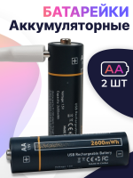 Аккумуляторные батарейки AA 2600mWh Type-c 2шт. (Черный)