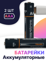 Аккумуляторные батарейки AAA 750mWh Type-c 2шт. (Черный)